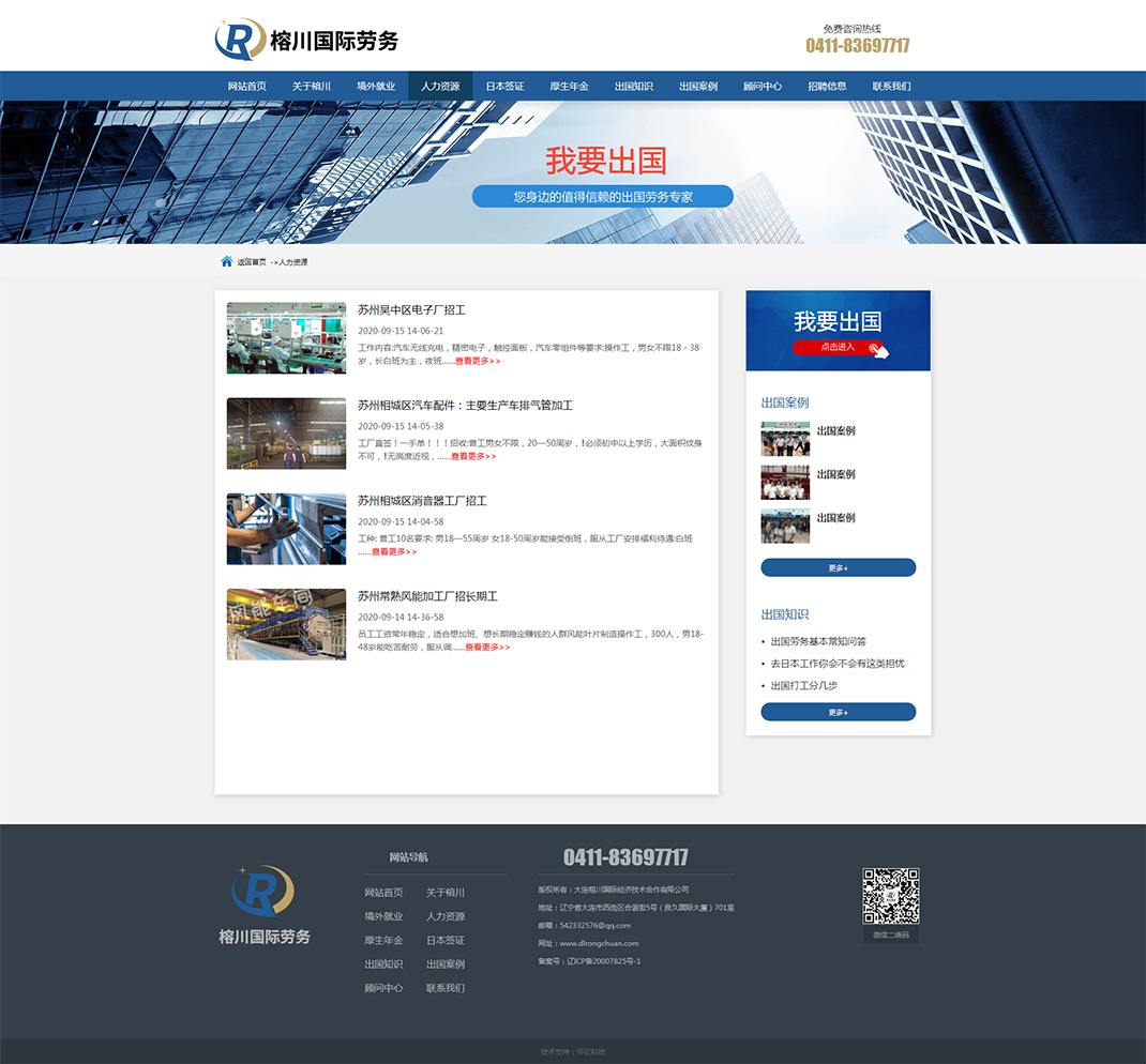 大连榕川国际经济技术合作有限公司(以下简称榕川国际),是中华人民共和国商务部批准并授权的正规资质劳务外派输出单位,公司坐落于浪漫之都,美丽的海滨城市大连。是一家专业从事国外劳务派遣及输出、国外劳动政策咨询、出国留学信息咨询、经济信息咨询及企业管理咨询服务、等大型人力资源服务机构。
